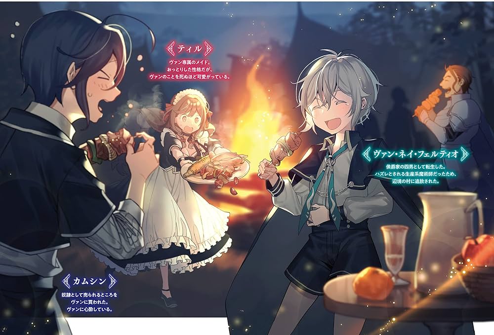 物語の主人公であるヴァンは、貴族の四男として生まれながらも、8歳の時に判明した魔術適性が原因で、実家であるフェルティオ侯爵家から追放されてしまいます。この世界では、炎や水などを操る「四元素魔術」こそが貴族にふさわしい強力な能力とされており、ヴァンが授かった、物を作り出す「生産魔術」は、戦闘には役立たない「ハズレ適性」と見なされていたのです。父親に失望されたヴァンは、兄ムルシアの計らいによって、かろうじて辺境の小さな村の領主という形で追放されることになります。